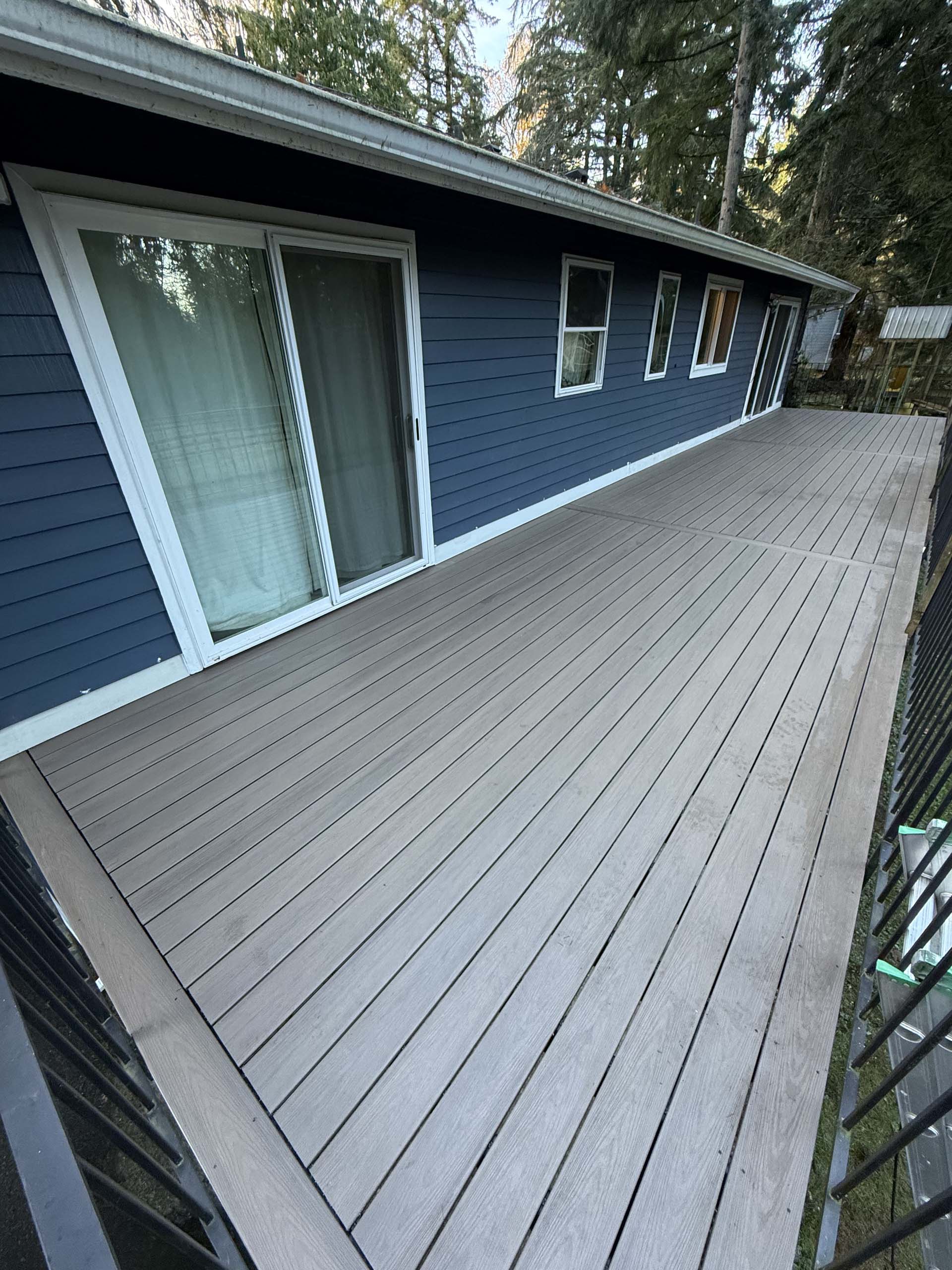The homeowner chose Deckorators® composite decking, which provides a durable, low-maintenance, and visually appealing finish.